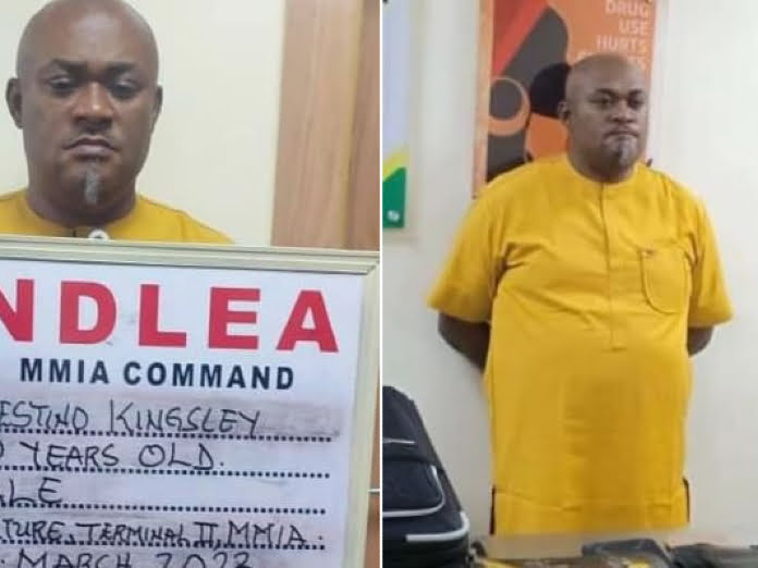 Operatives of the National Drug Law Enforcement Agency (NDLEA), have arrested a businessman, Kingsley Celestino, at the Murtala Muhammed International Airport (MMIA), Ikeja, Lagos, over 9.40 kilogrammes of heroin concealed in false bottoms of his two travelling bags.
