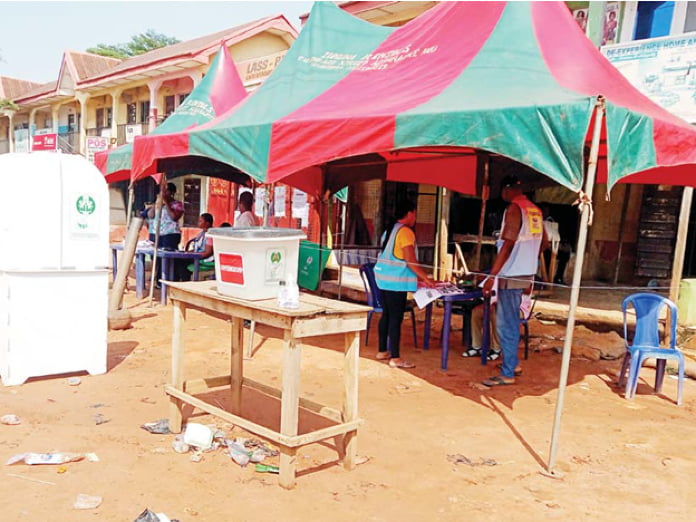 Polling centres visited in Awka the State capital, showed near empty units as staff of the Independent National Electoral Commission, INEC sat idly.