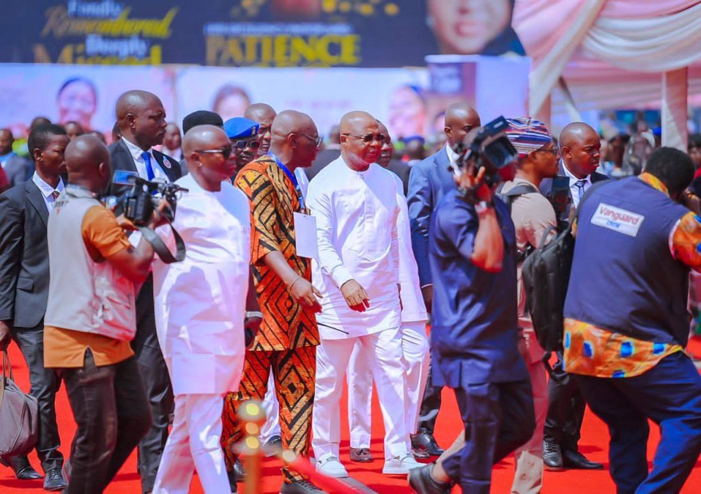 Vice President Kashim Shettima, Senate President Godswill Akpabio, and former President Goodluck Jonathan were among those who honoured the final homecoming of the late Akwa Ibom State First Lady, Pst. Mrs. Patience Umo Eno, at her country home, Ikot Ekpene Udo, Nsit Ubium LGA of Akwa Ibom State.