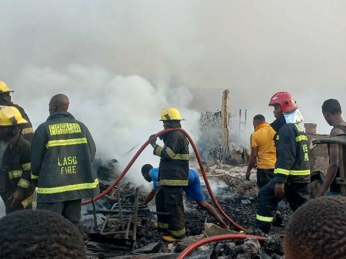 Fire has destroyed Goods worth millions of naira at Akere Spare Parts Market, Ajegunle in the Apapa area of Lagos